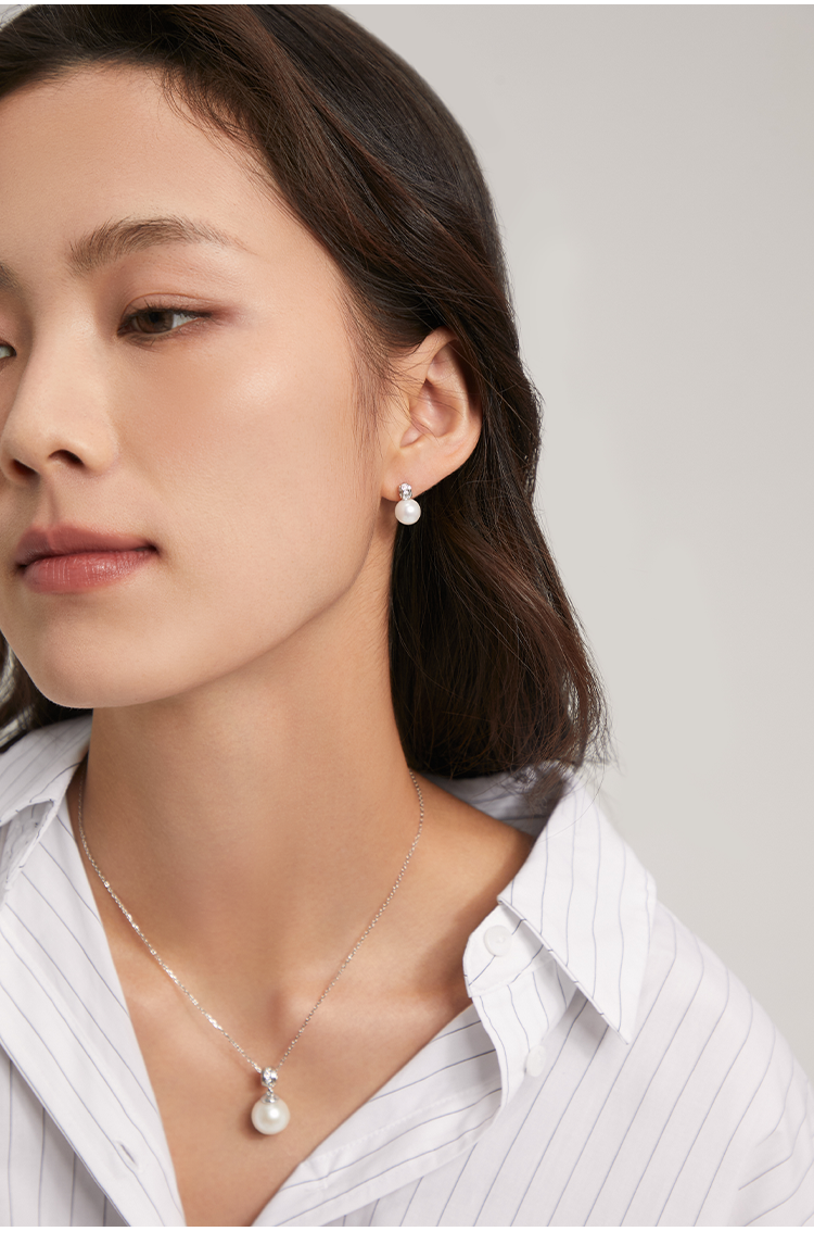 The Thousand Gold Duchess Style Secret Message Ring and Stud Earrings - Edison Pearl Pendant - Simple and Elegant, High-End, Versatile Ear Jewelry